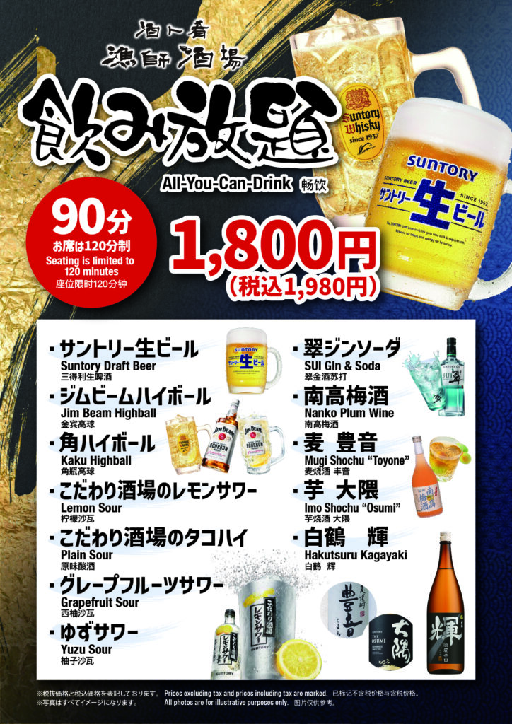 **飲み放題【90分】1,980円(税込)**をスタートします🍻